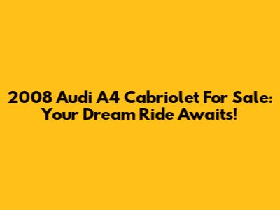 Hey there, car enthusiasts! Are you on the hunt for a stylish, reliable, and fun-to-drive convertible? Look no further! The 2008 Audi A4 Cabriolet might just be the perfect match for you. This beauty combines German engineering with open-top freedom, making it an ideal choice for cruising around town or embarking on scenic road trips. Let's dive into what makes this car so special and why you should consider adding it to your garage.